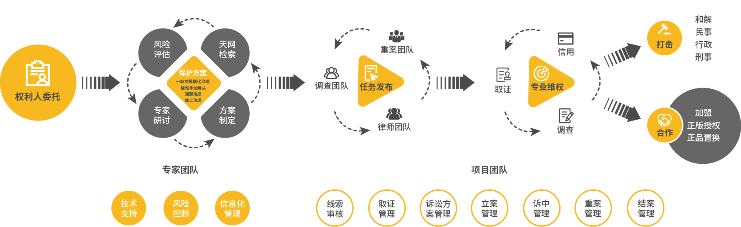 安盾网的侵权治理打击侵权市场范围广、打击效率高、案件数量大,是知识产权保护强有力的一个团队,与我们所支持的快、准、狠打击侵权的目标不谋而合。
